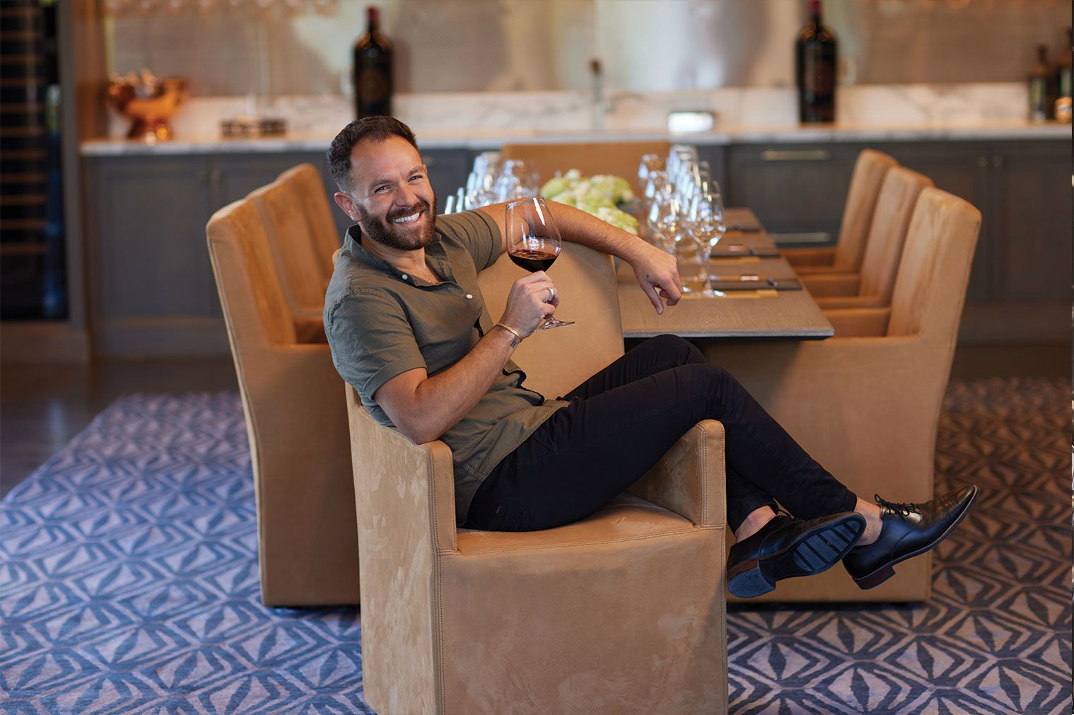 Outside of work, you can find Jordan singing and listening to Lady Gaga, traveling, playing tennis, working out, spending time with friends, creating memories with family, playing fetch with his dog Kona, swimming in a pool, and enjoying Eleven Eleven wines!